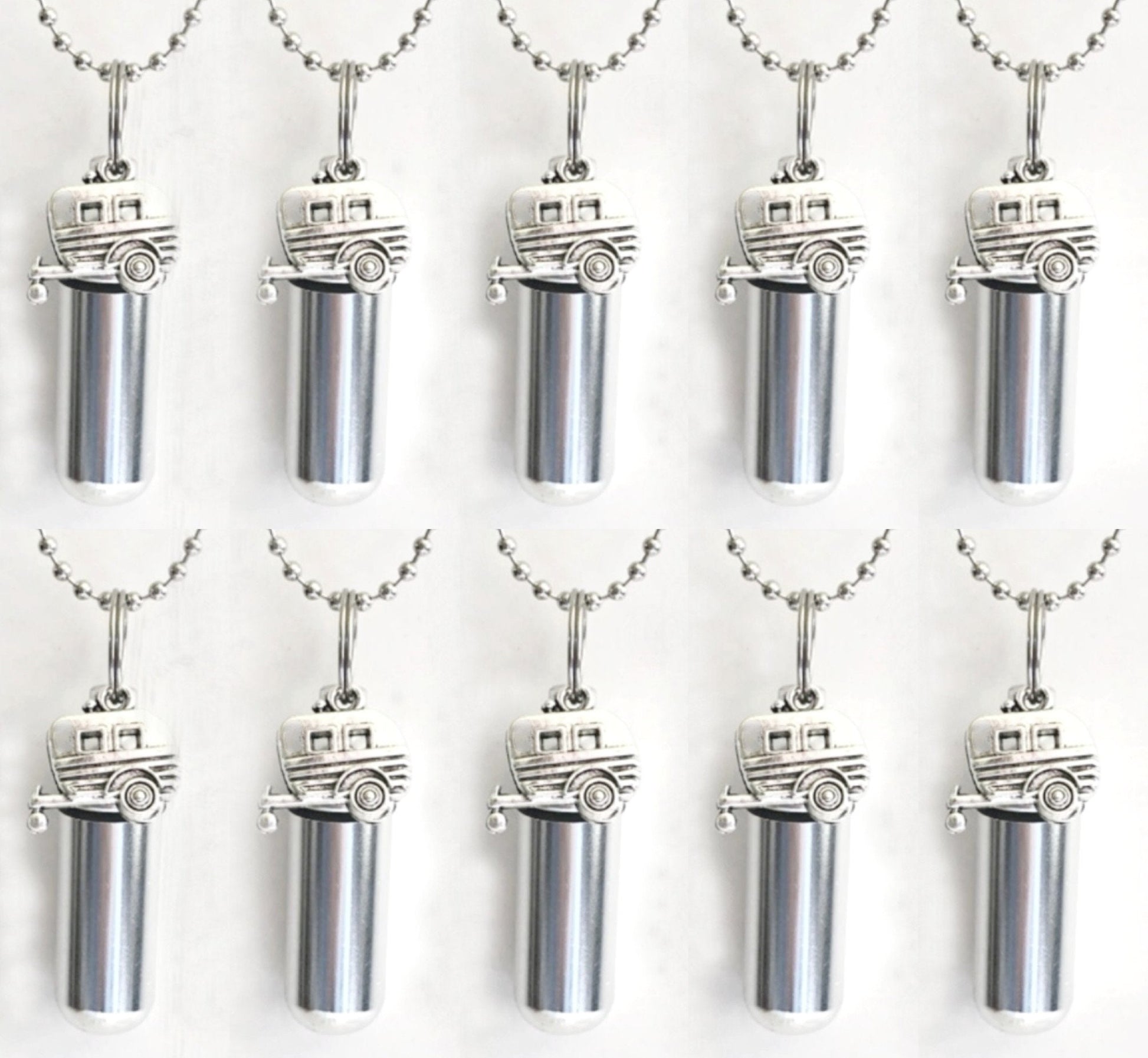 Set Of TEN Silver Camper/RV/Trailer Cremation Urn Necklaces - Memorial Jewelry, Ashes Necklace, Urn For Human Ashes, Personal Urn, Pet Urn
