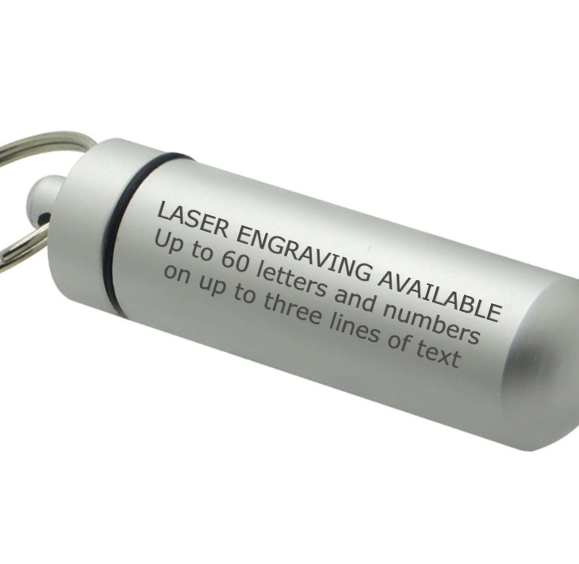 Sturdy, discreet, and secure, this Urn is 1-3/4 inches tall and has a small clear container inside to hold a small amount of your loved ones ashes. Keep them close to you always. Urn is made of aircraft-grade anodized aluminum and will last forever. The urn unscrews to reveal the storage chamber. Inside there is a clear container to keep your loved one's ashes safe and dry. A rubber gasket on the screw-on cap provides a waterproof seal. These urns are strong and lightweight enough to carry every day and fits nicely on a keyring or a necklace.