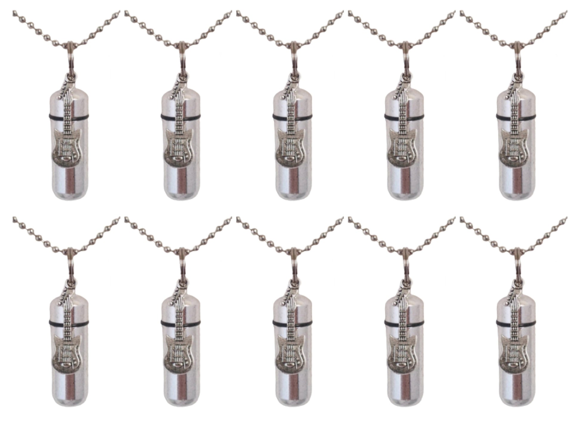 Set of TEN Silver CREMATION URN Keepsakes w/Electric Guitars - Ashes Necklace, Memorial Keepsake, Mourning Jewelry, Personalized Urn