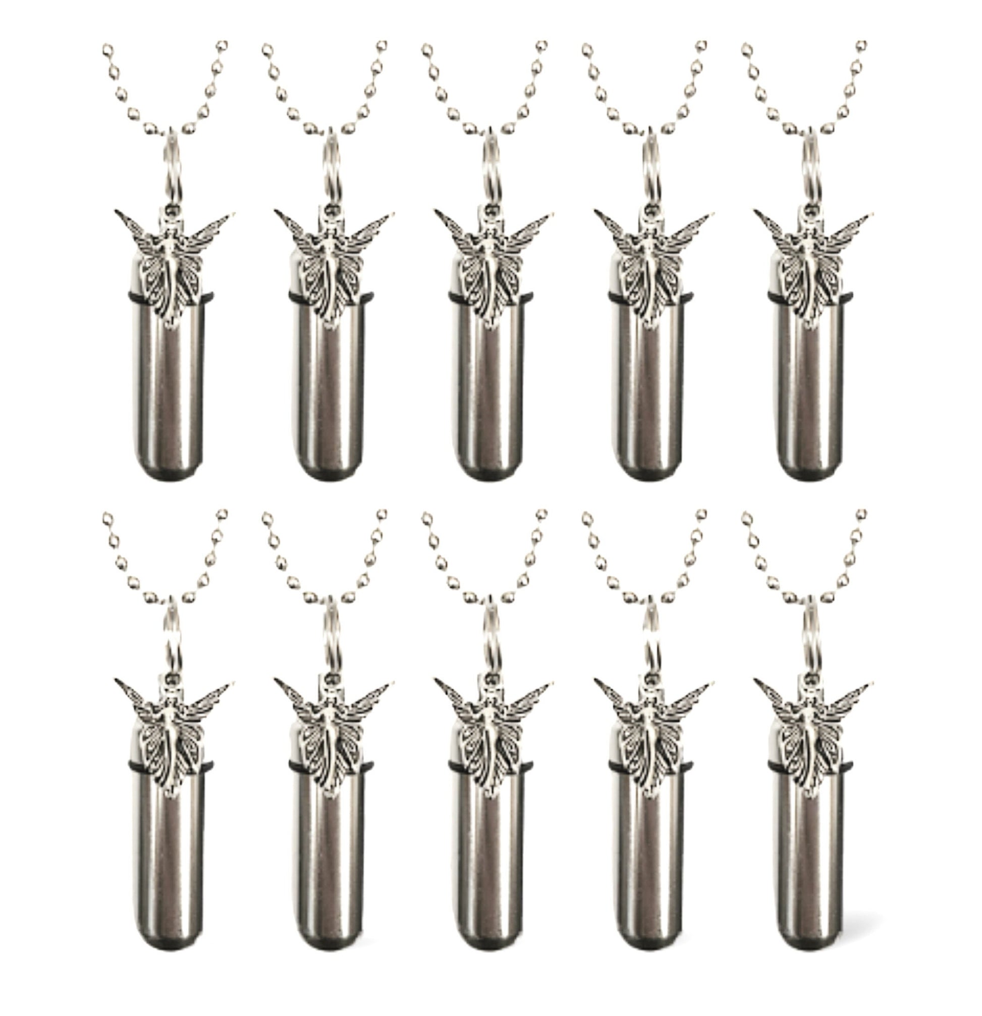 Set of TEN Silver CREMATION URN Necklaces with Fairy Angels - Ashes Necklace, Urn Jewelry, Mourning Jewelry, Urn For Human Ashes, Pet Urn