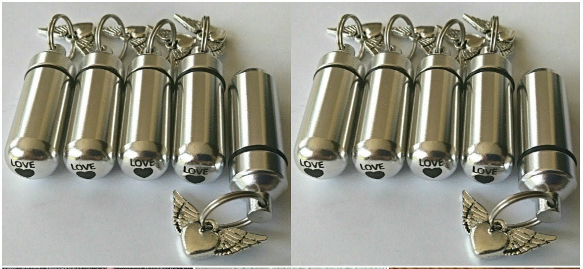 Sturdy, discreet, and secure, this Urn is 1-3/4 inches tall and has a small clear container inside to hold a small amount of your loved ones ashes. Keep them close to you always. Urn is made of aircraft-grade anodized aluminum and will last forever. The urn unscrews to reveal the storage chamber. Inside there is a clear container to keep the ashes safe and dry. A rubber gasket on the screw-on cap provides a waterproof seal. These urns are strong and lightweight enough to carry every day and fits nicely on a keyring or a necklace.