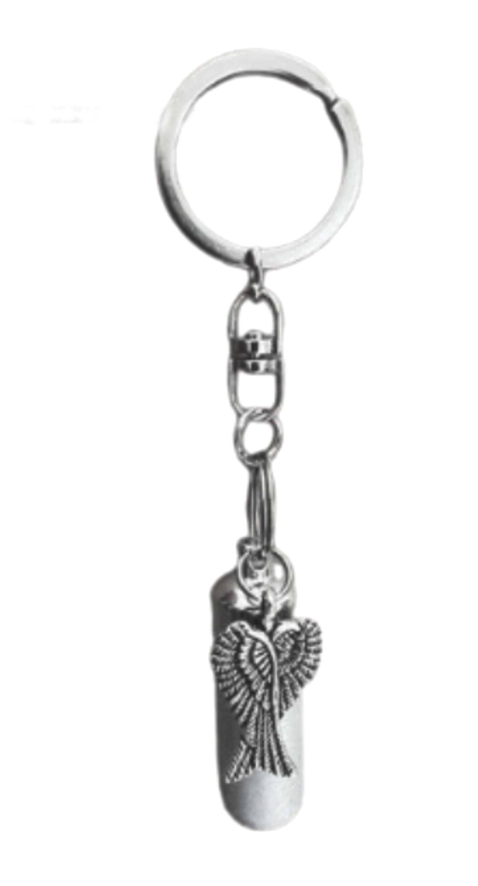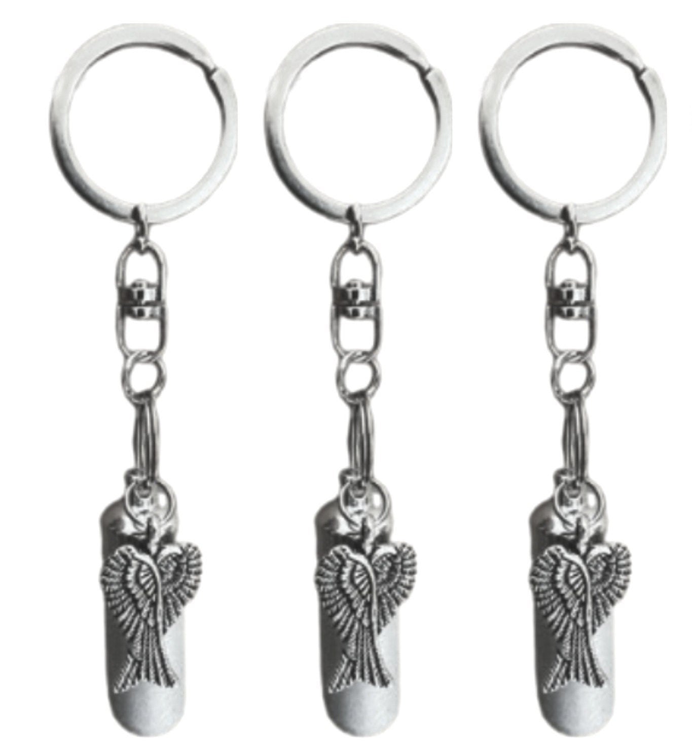 Set of THREE Brushed Silver Cremation Urn on Swivel Keychains with Angel Wings - Mourning Keepsake, Child Urn, Pet Urn, Personalized Urn