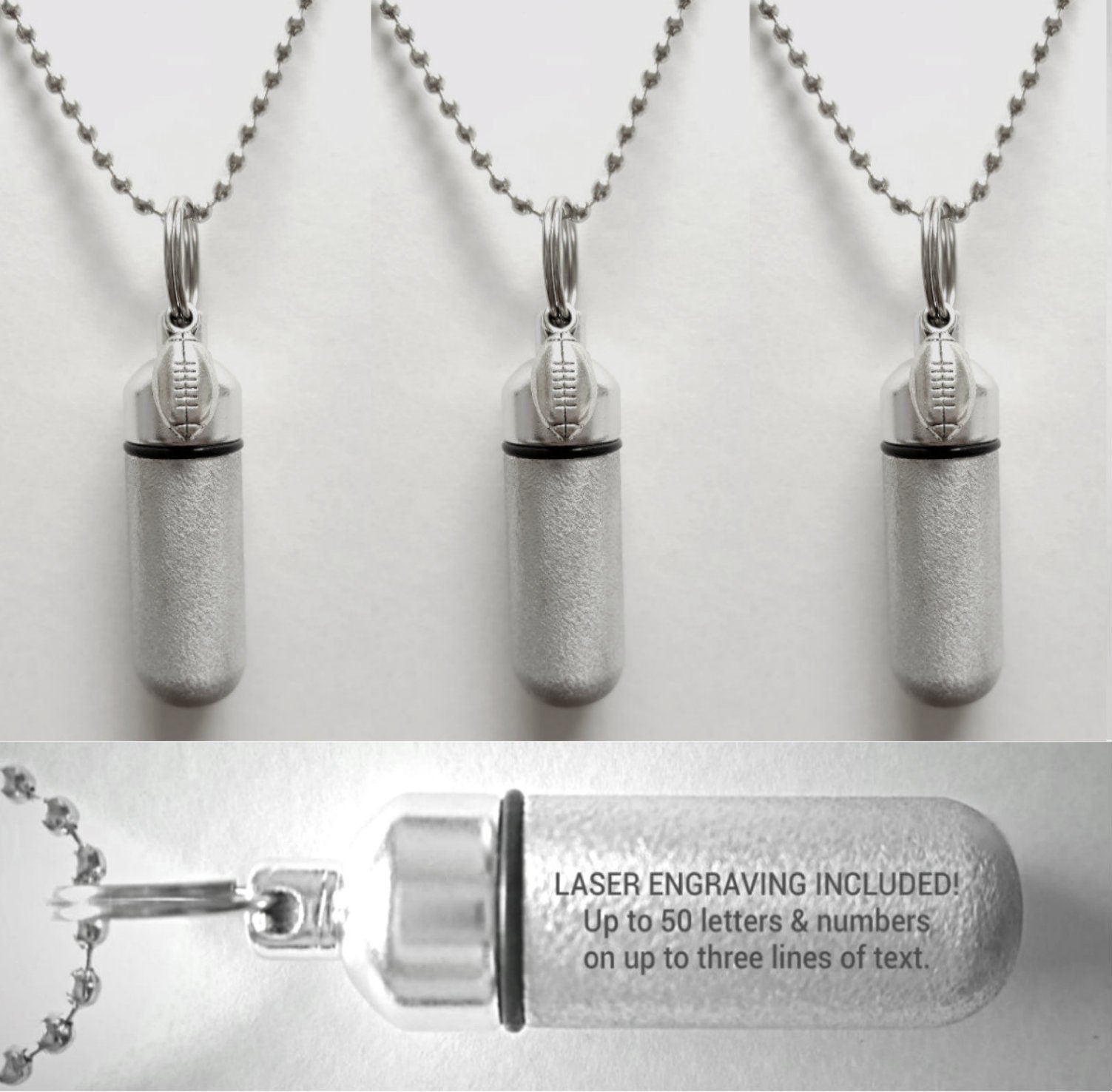 Set of Three Brushed Silver CUSTOM ENGRAVED Football Cremation Urn Necklaces - Urn Jewelry, Ashes Necklace, Urn For Human Ashes, Pet Urn