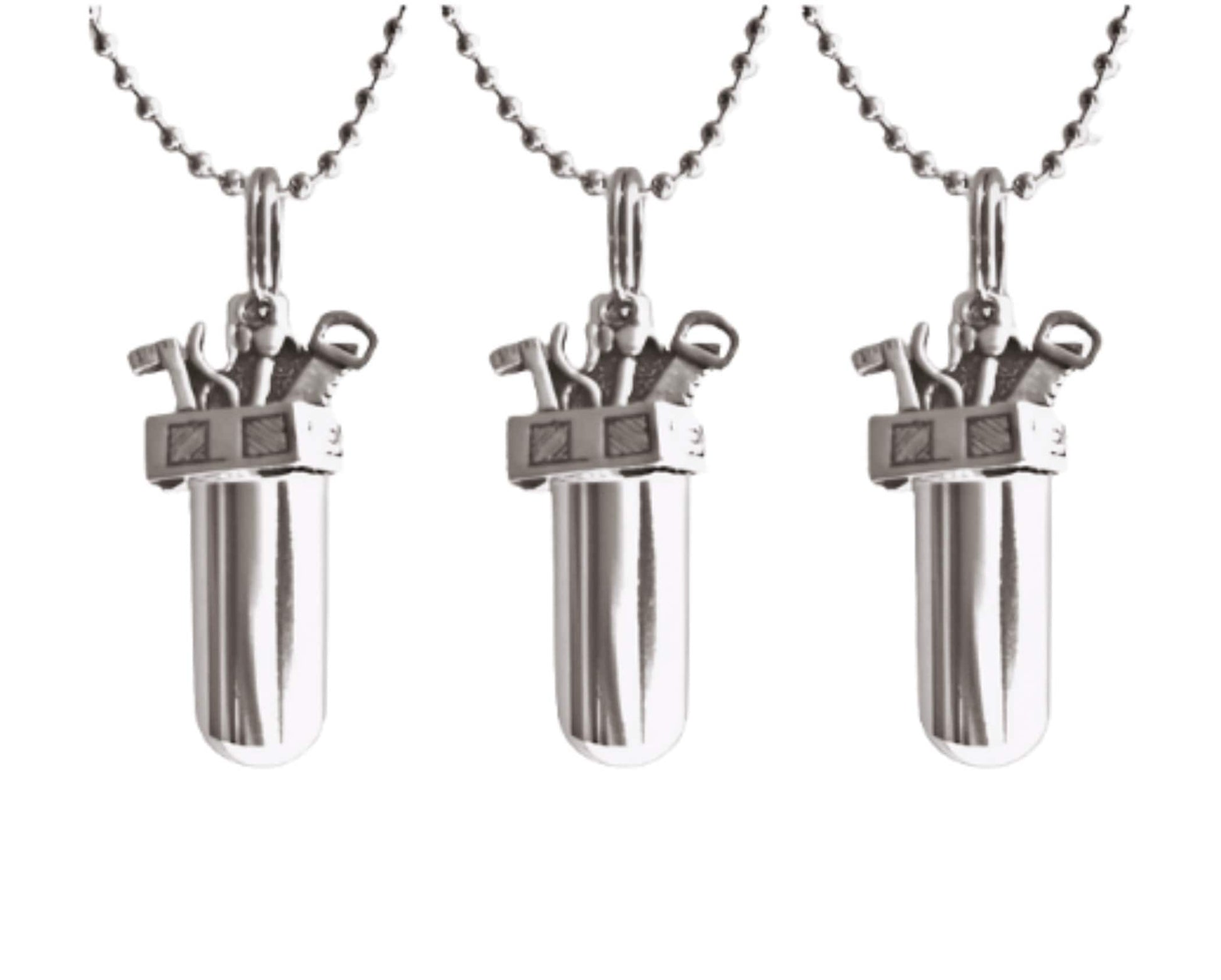 Set of Three CREMATION TOOLBOX Urn Necklaces for Contractor/Mechanic/Handyman (with 3 Tool Box Charms) Memorial Jewelry, Urn For Human Ashes