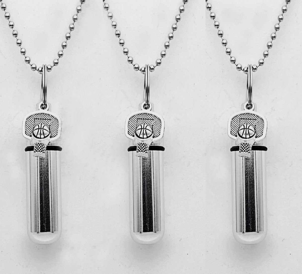 Set of Three Cremation Urn Necklace Keepsakes with Basketball Charm - Memorial Jewelry, Ashes Necklace, Child Urn, Personalized Urn