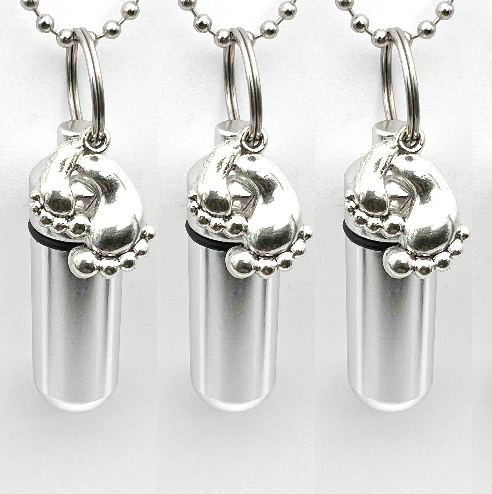 Set of Three CREMATION URN Necklaces with Silver Baby Feet - Keepsake Urn, Baby Loss, Child Loss, Urn Jewelry Infant Urn, Personalized Urn