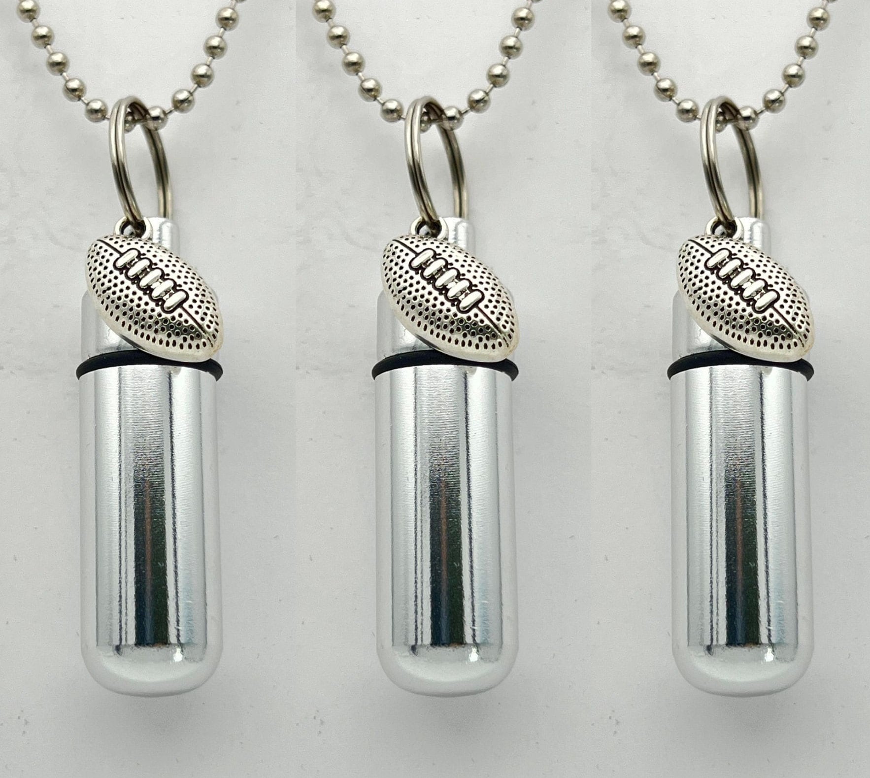 Set of Three FOOTBALL CREMATION URNS on 24" Steel Ball-Chain Necklaces - Memorial Jewelry, Mourning Keepsake, Ashes Urn, Personalized Urn