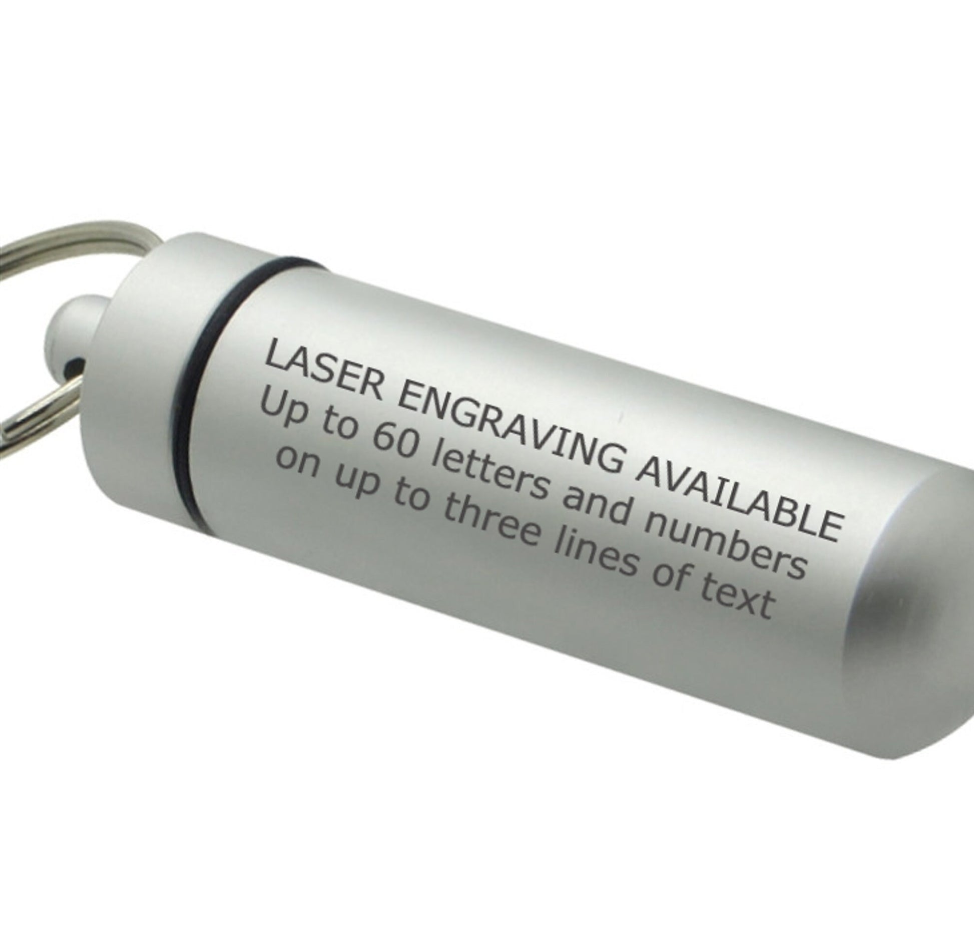 Sturdy, discreet, and secure, this Urn is 1-3/4 inches tall and has a small clear container inside to hold a small amount of your loved ones ashes. Keep them close to you always. Urn is made of aircraft-grade anodized aluminum and will last forever. The urn unscrews to reveal the storage chamber. Inside there is a clear container to keep the ashes safe and dry. A rubber gasket on the screw-on cap provides a waterproof seal. These urns are strong and lightweight enough to carry every day and fits nicely on a keyring or a necklace.