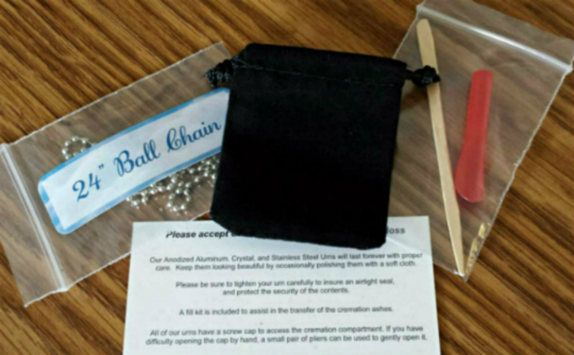 Sturdy, discreet, and secure, this Urn is 1-3/4 inches tall and has a small clear container inside to hold a small amount of your loved ones ashes. Keep them close to you always. Urn is made of aircraft-grade anodized aluminum and will last forever. The urn unscrews to reveal the storage chamber. Inside there is a clear container to keep the ashes safe and dry. A rubber gasket on the screw-on cap provides a waterproof seal. These urns are strong and lightweight enough to carry every day and fits nicely on a keyring or a necklace.