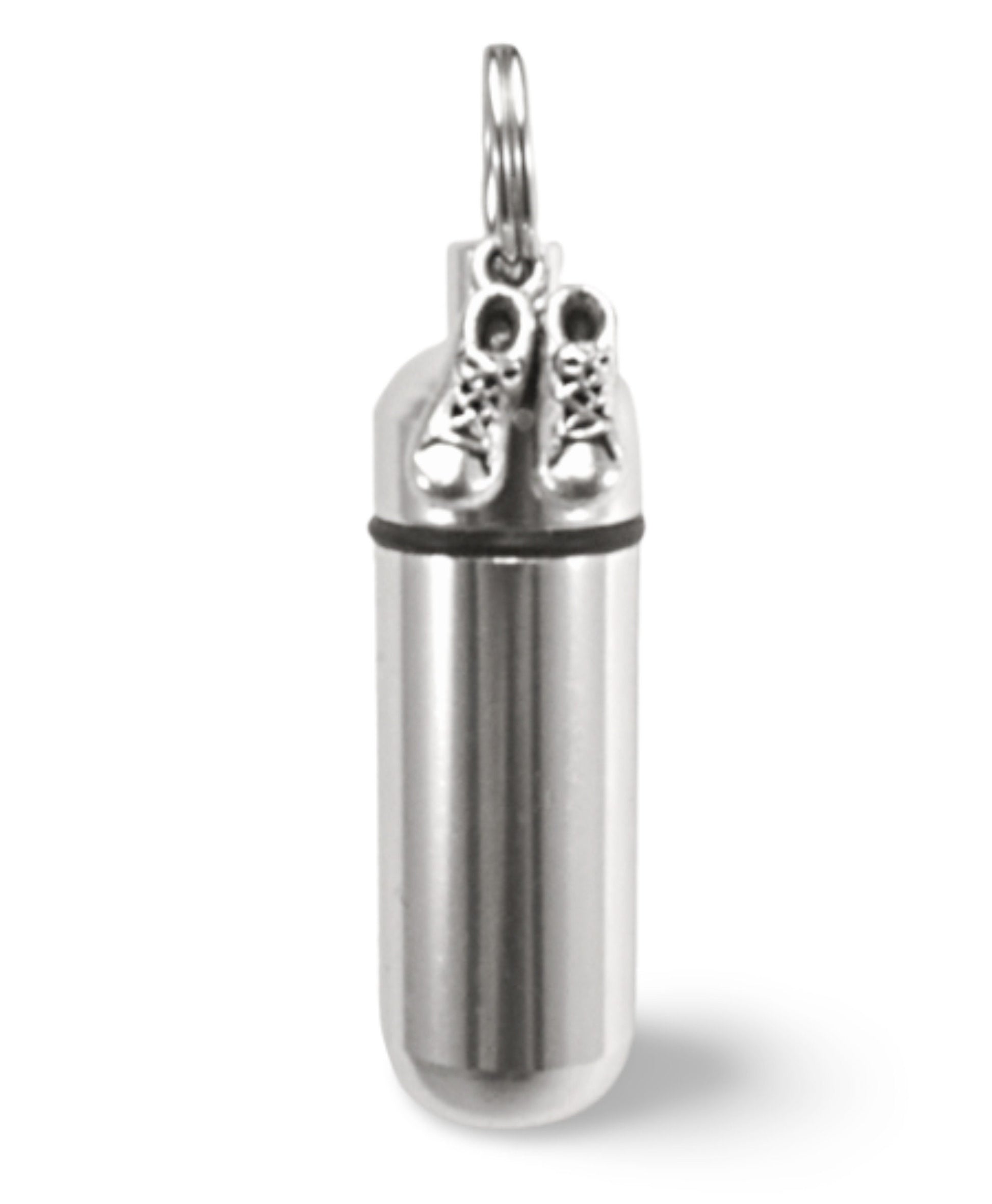 Sturdy, discreet, and secure, this Urn is 1-3/4 inches tall and has a small clear container inside to hold a small amount of your loved ones ashes. Keep them close to you always. Urn is made of aircraft-grade anodized aluminum and will last forever. The urn unscrews to reveal the storage chamber. Inside there is a clear container to keep the ashes safe and dry. A rubber gasket on the screw-on cap provides a waterproof seal. These urns are strong and lightweight enough to carry every day and fits nicely on a keyring or a necklace.