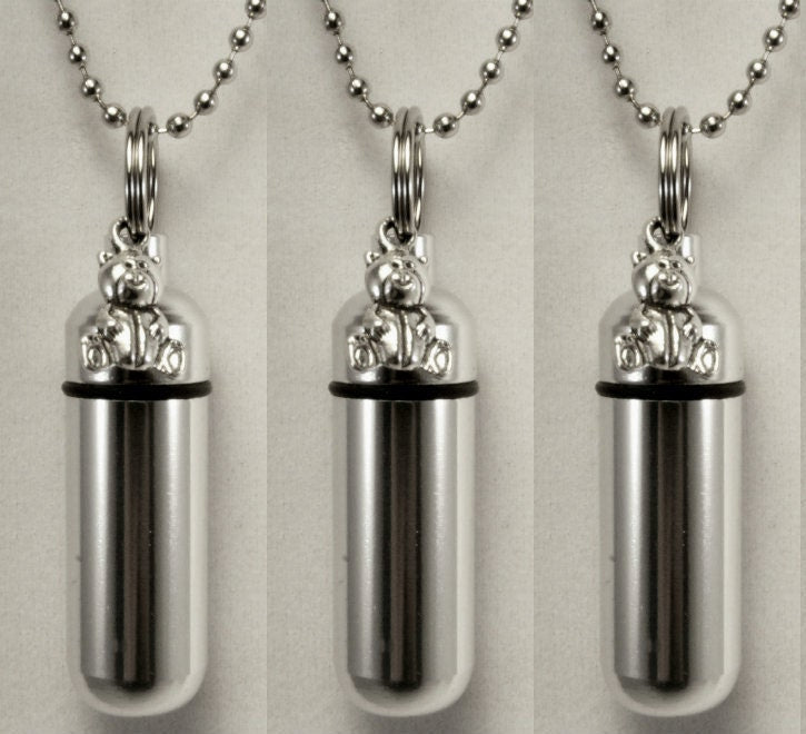Set of Three Teddy Bear Cremation Urn Keepsake, Mourning Jewelry, Child Urn, Baby Urn, Ashes Keepsake, Personalized Urn