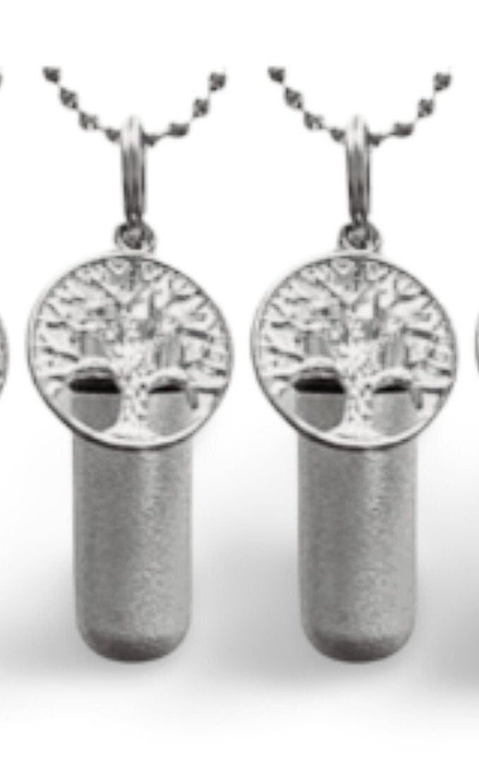 Set of TWO Brushed Silver Tree-Of-Life CREMATION URN Necklaces - Custom Engraved, Ashes Jewelry, Mourning Keepsake, Urn for Human Ashes