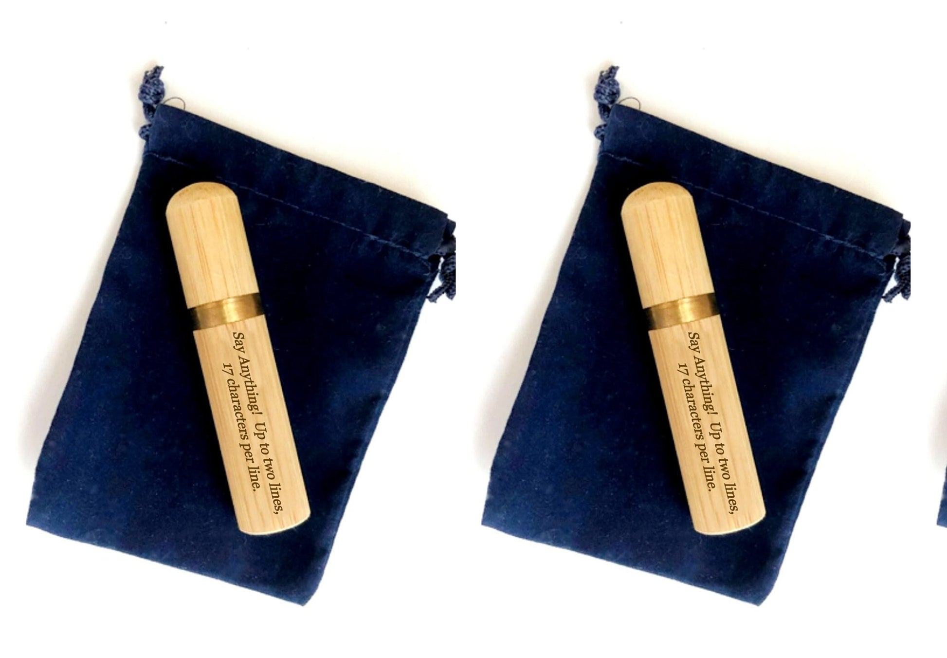Set Of Two CUSTOM ENGRAVED Natural Sandalwood Cremation Urns / Scattering Tubes - Fits in Pocket/Purse, TSA Travel Compliant, Very Secure