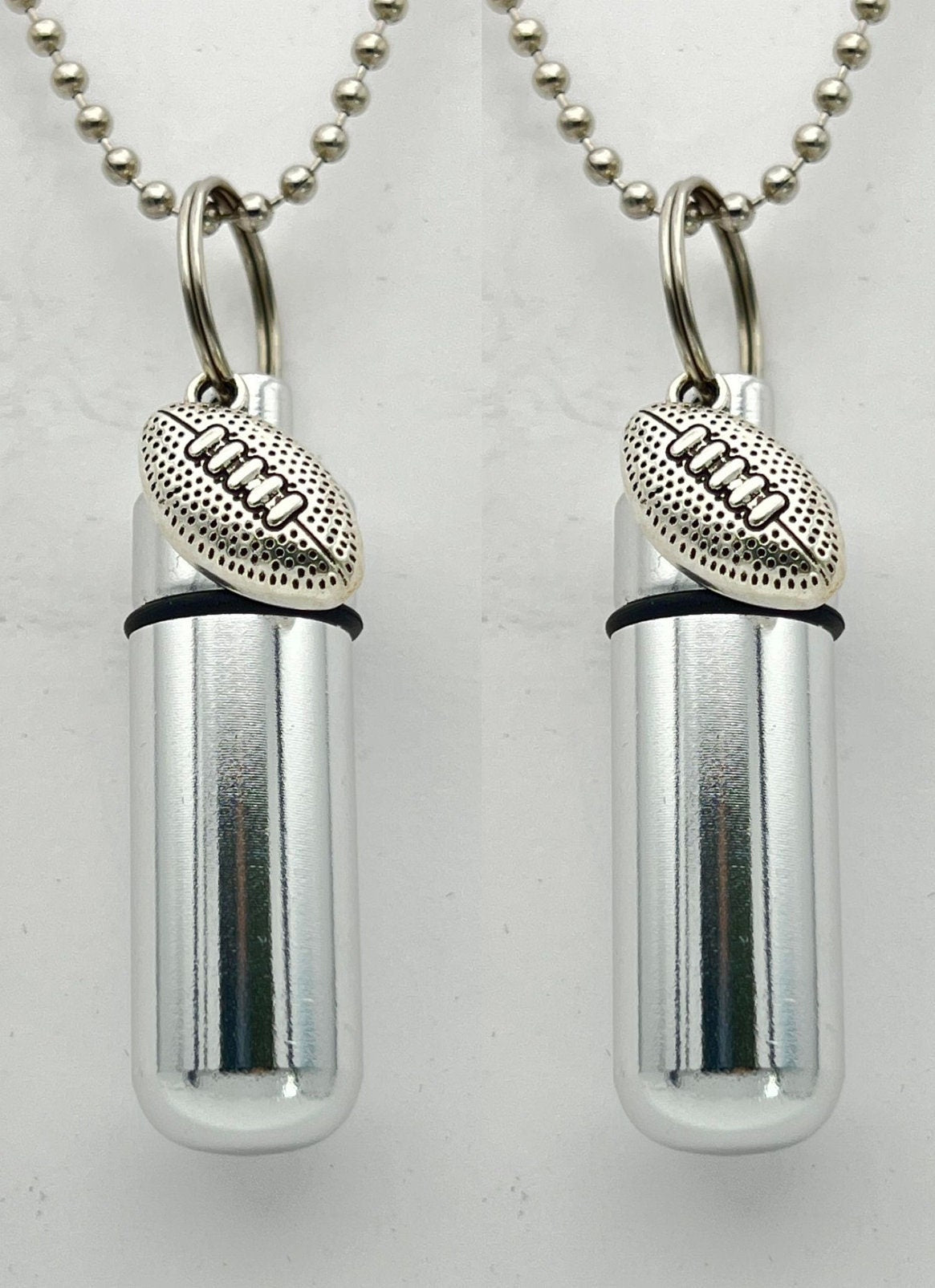 Set of Two FOOTBALL CREMATION URN Necklaces - Memorial Urns, Ashes Necklace, Urn Keepsake, Pet Urn, Child Urn, Urn for Human Ashes