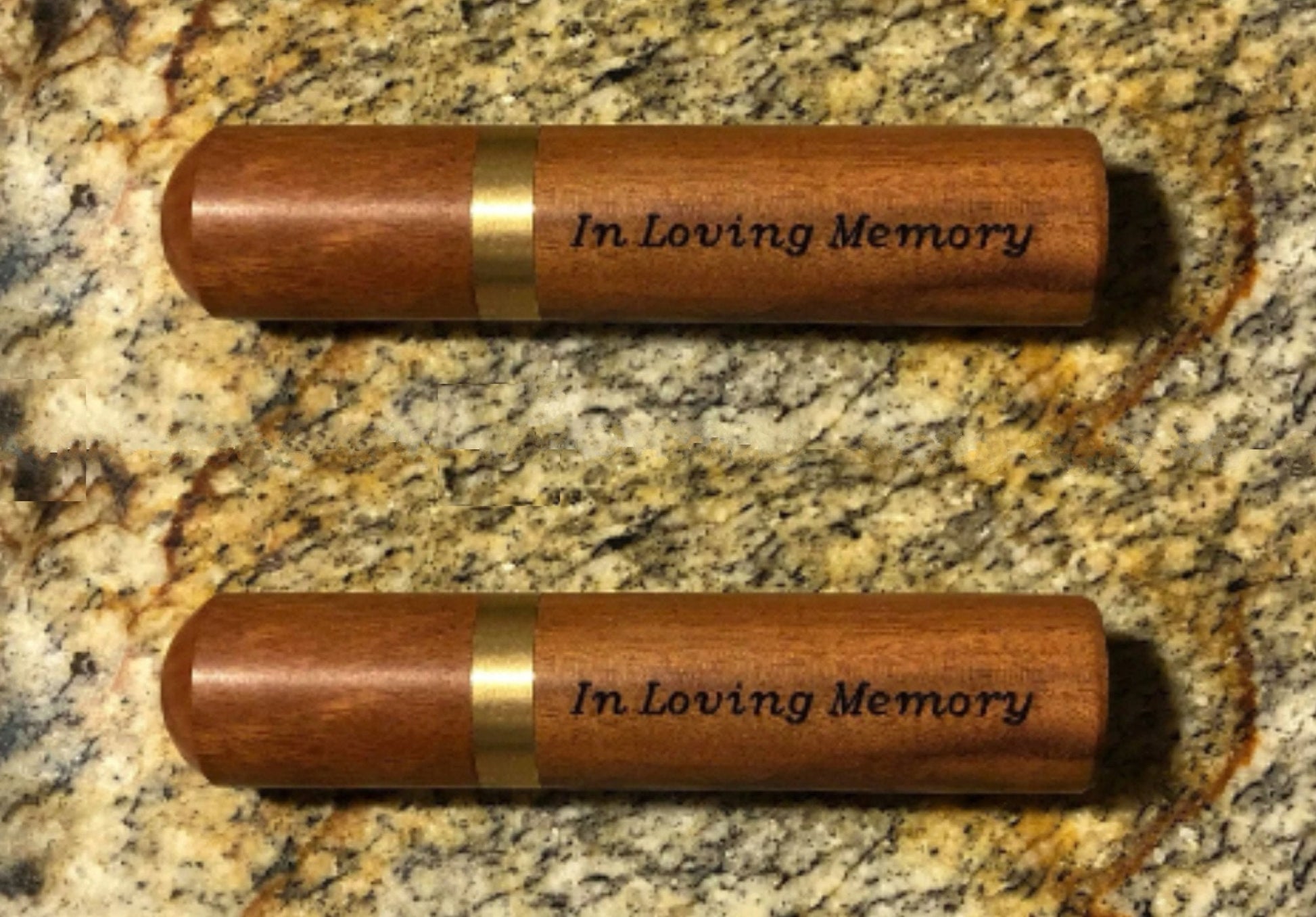 Sturdy, discreet, and secure, this Urn is 3-1/4 high and 5/8" wide. Made of natural Rosewood with brass fittings. A beautiful way to discreetly carry your loved one's ashes, or display the urn in a place of honor. Perfect for travel or for scattering a small amount of ashes in your loved one's favorite places. NOTE: Please be aware of local restrictions as to where & how to scatter ashes. Full instructions are included. These discreet urns/tubes are very secure and will virtually last forever. The urn unscrews to reveal the storage chamber which will keep a teaspoon of ash safe and dry. TSA COMPLIANT.