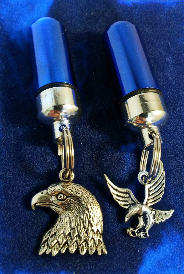 Set Of Two Patriotic Bald & Soaring Eagle BLUE Cremation Urn Necklaces - Urn Keepsake, Ashes Necklace, Mourning Jewelry. Personalized Urn