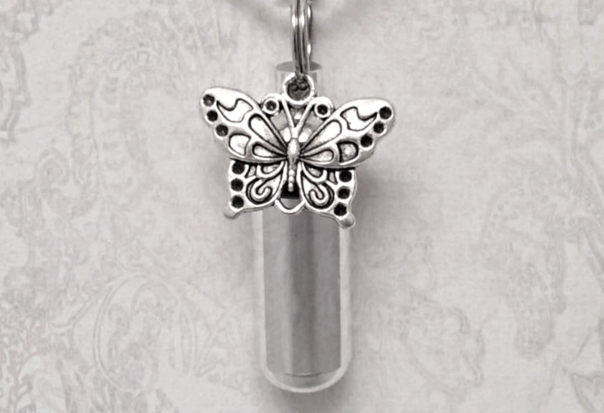 Set of Two Silver Cremation Urn Keepsakes with Large Butterfly - Child Urn, Mourning Keepsake, Memorial Jewelry, Baby Urn, Personalized Urn