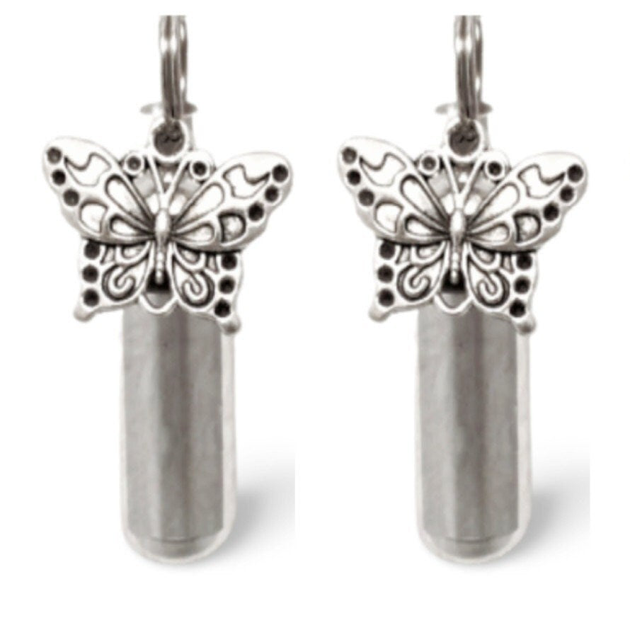 Two Silver Cremation Urns & containers with Silver BUTTERFLY Charms