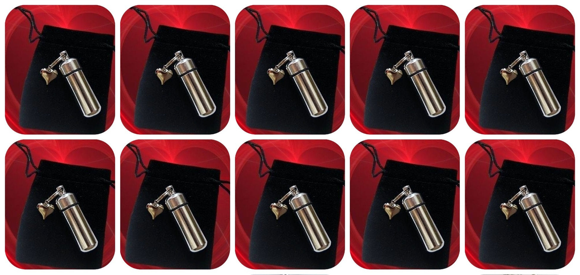 YOU GET TEN CREMATION URN KEEPSAKES, TEN VELVET POUCHES, & FILL KIT. .