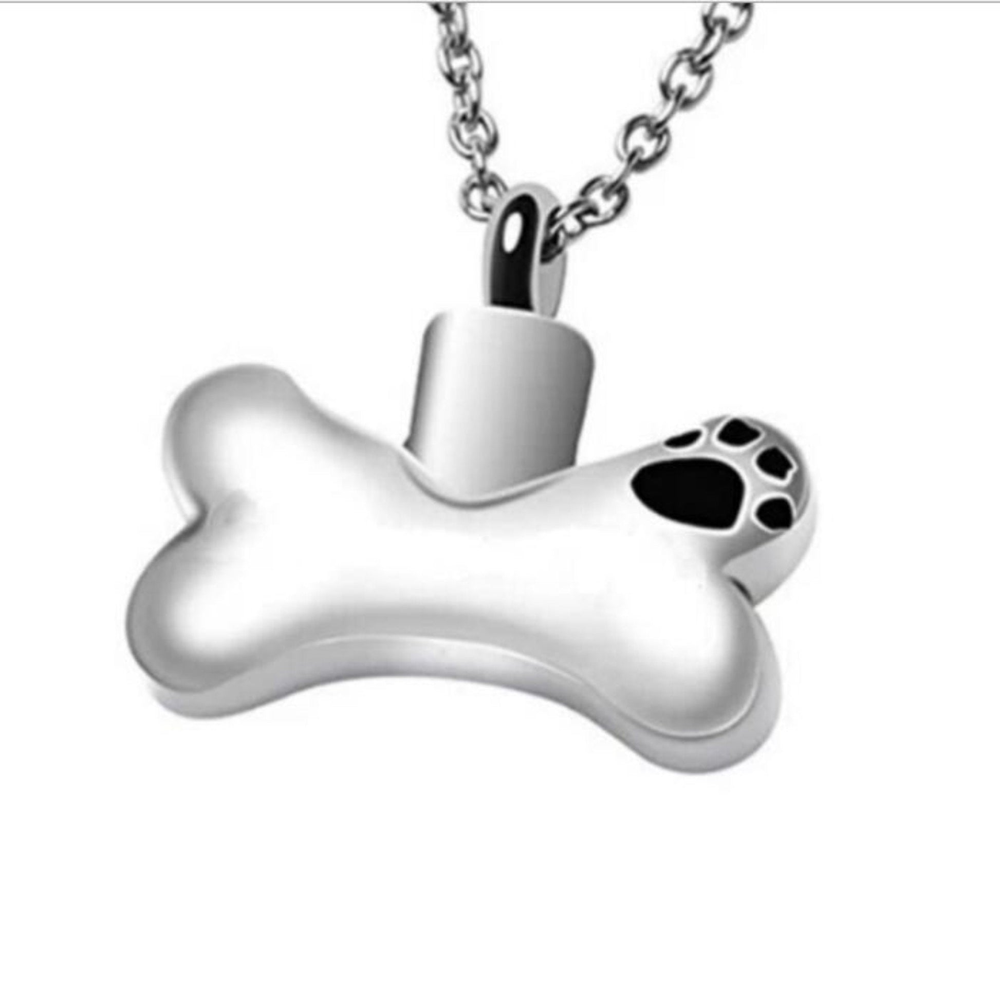 Stainless Steel Dog Bone with Engraved Paw CREMATION URN on 24" Curb Chain Necklace - Mourning Jewelry, Pet Loss, Memorial Keepsake, Dog Urn