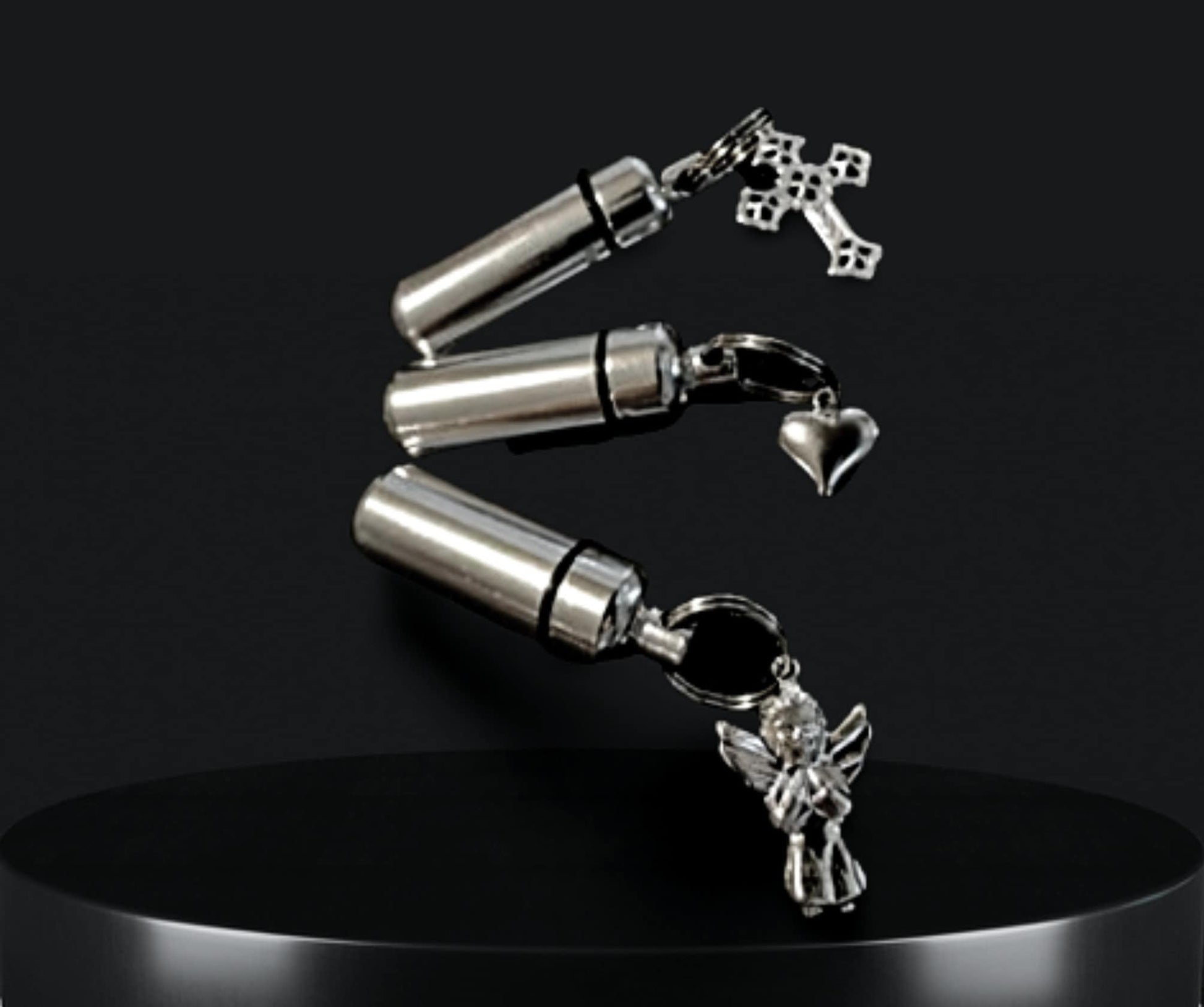 Sturdy, discreet, and secure, this Urn is 1-3/4 inches tall and has a small clear container inside to hold a small amount of your loved ones ashes. Keep them close to you always. Urn is made of aircraft-grade anodized aluminum and will last forever. The urn unscrews to reveal the storage chamber. Inside there is a clear container to keep the ashes safe and dry. A rubber gasket on the screw-on cap provides a waterproof seal. These urns are strong and lightweight enough to carry every day and fits nicely on a key ring or a necklace.