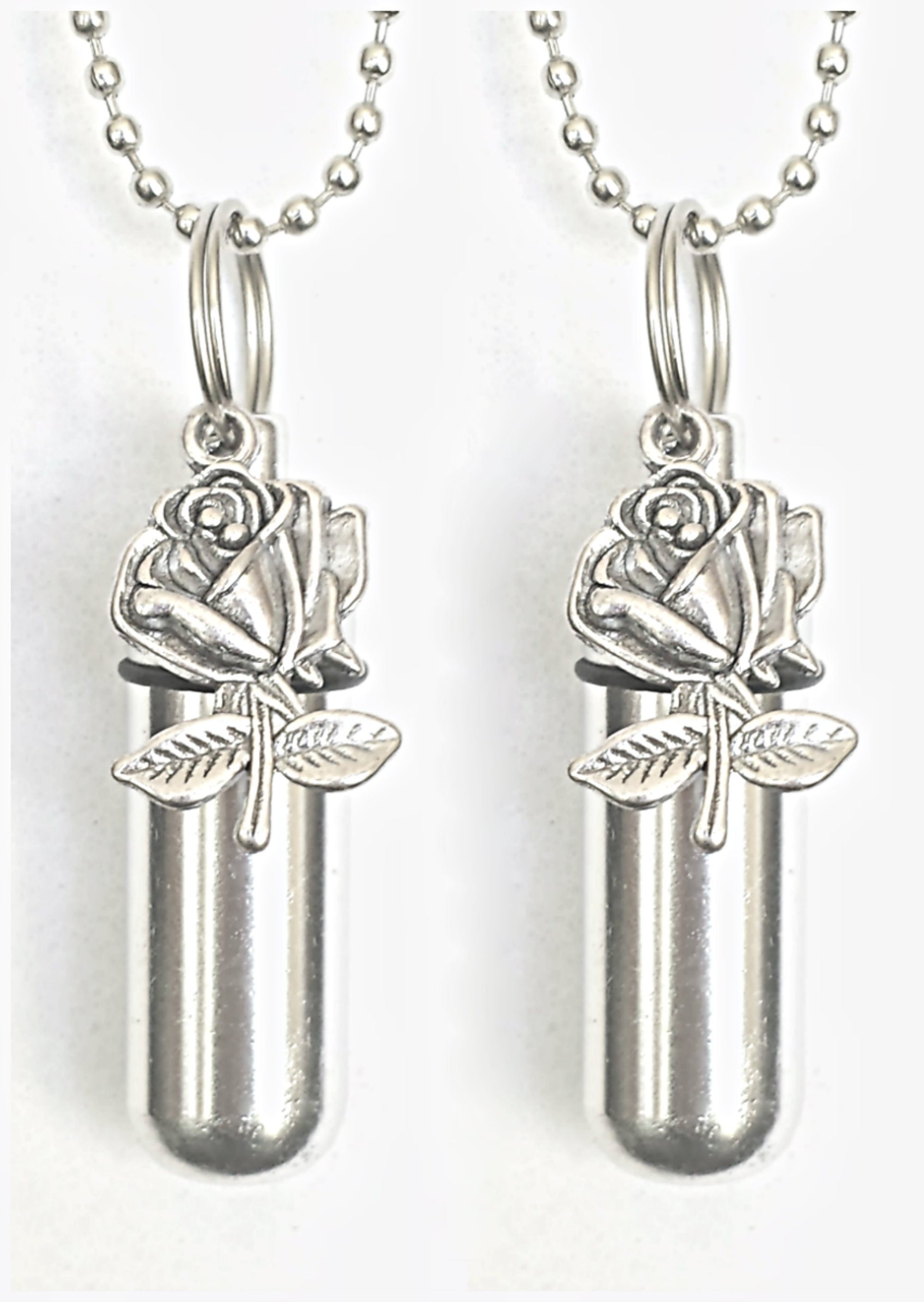 TWO Beautiful Silver Roses CREMATION URN Necklaces, Includes Two Velvet Pouches, Two 24" Ball Chains, & Fill Kit, Memorial Keepsake