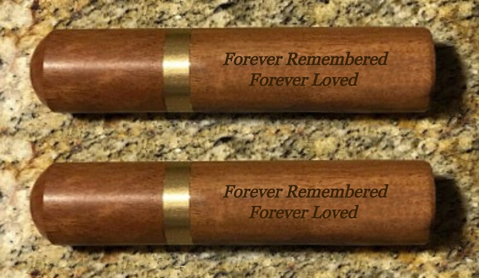 Two ENGRAVED "Forever Remembered Forever Loved" Rosewood Cremation Urns/Scattering Tubes, Fits in Pocket/Purse, TSA Compliant, Very Secure