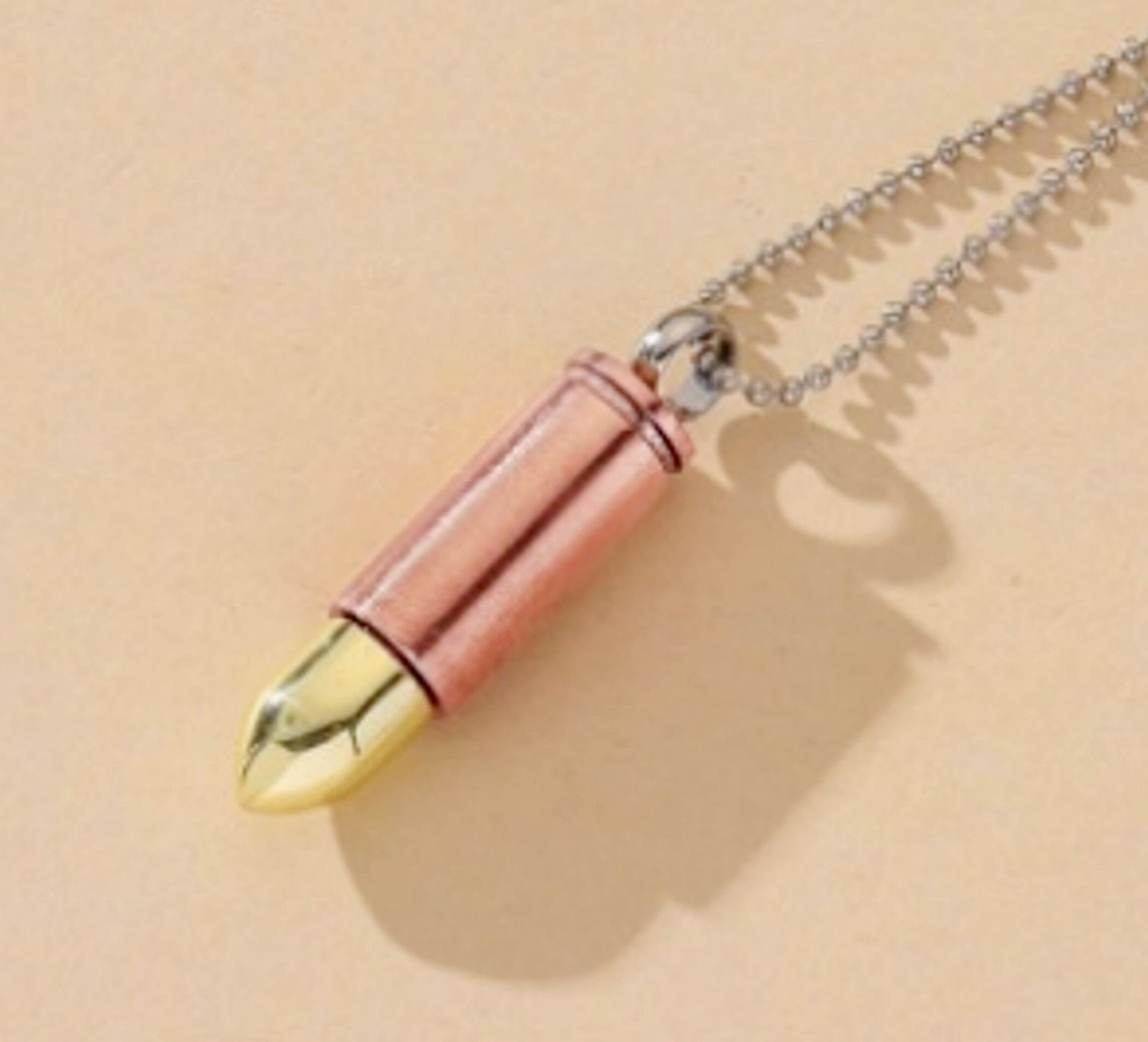 Two-Tone Copper/Brass Bullet Cremation Urn on 24" Steel Ball Chain Necklace - with Black Velvet Pouch & FIll Kit